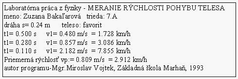 merania fyzikálnej veličiny rýchlosť s automatickým výpočtom